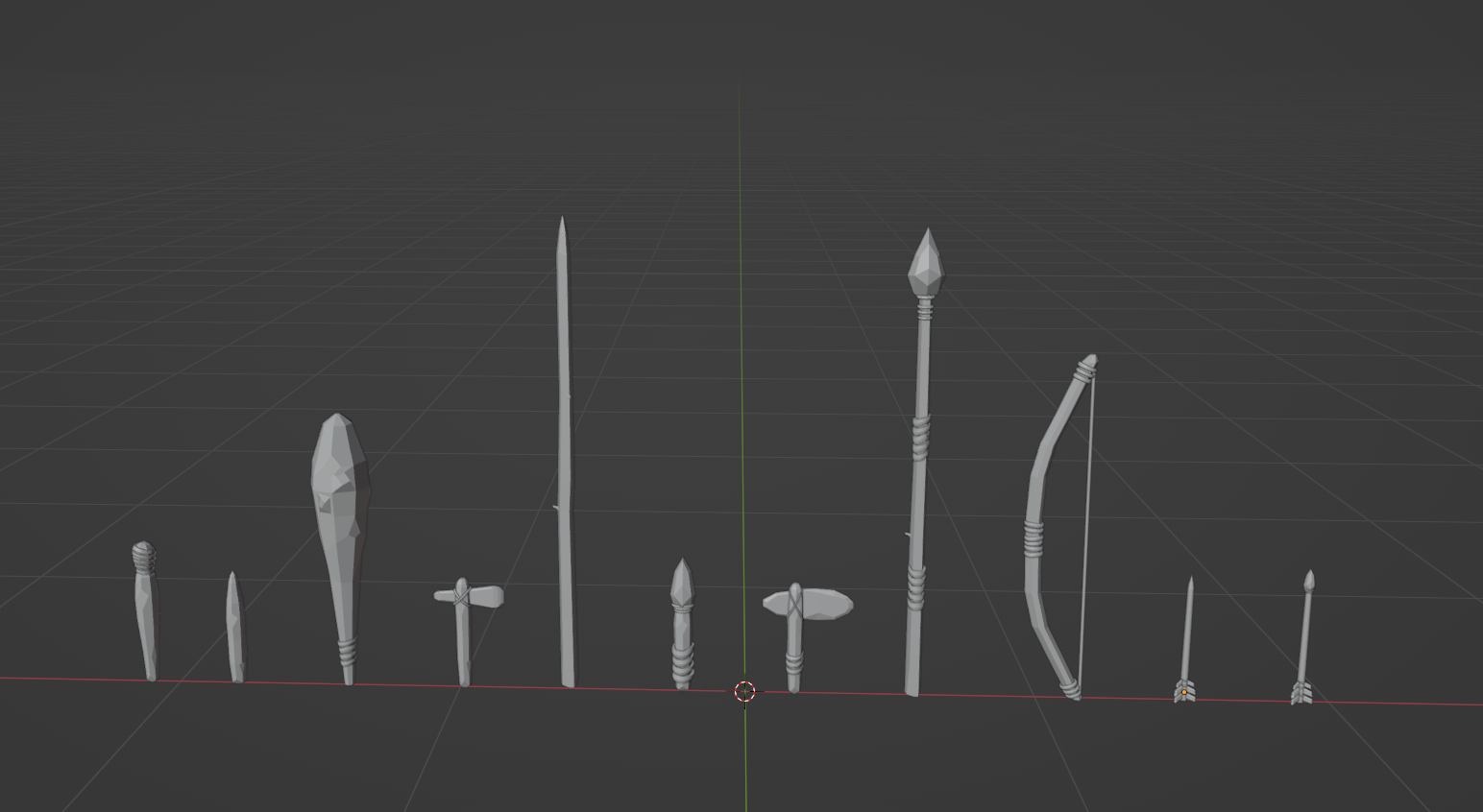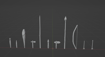 Ещё бы объединить все меши в один, чтобы стрела была одним мешем например и так далее.